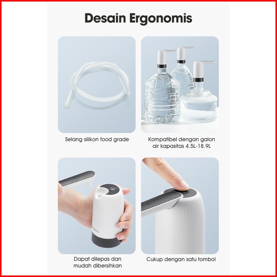 Samono Pompa Galon Elektrik Sw-ewp02 Water Pump Otomatis Baterai 1200mah Rechargeable Free Kabel Usb Micro Tanpa Angkat