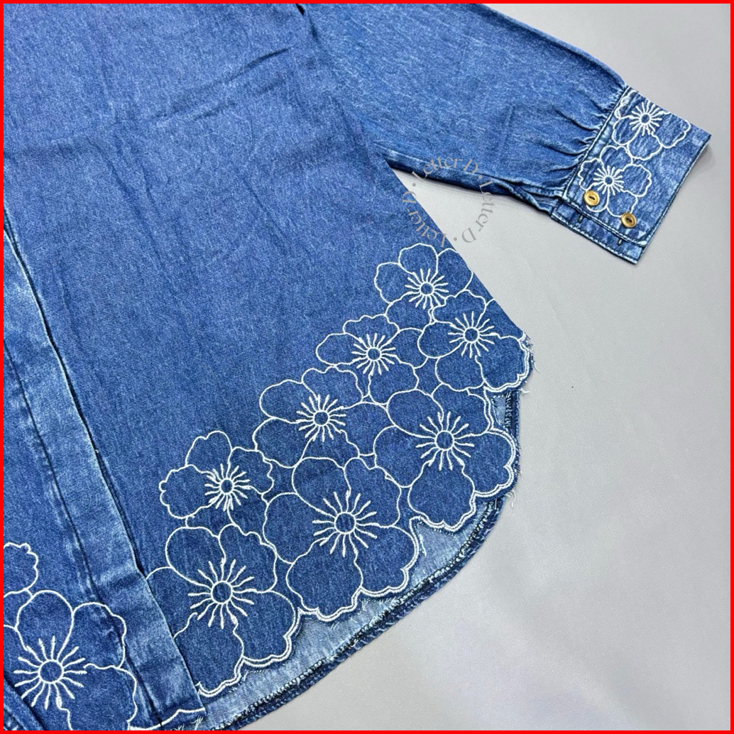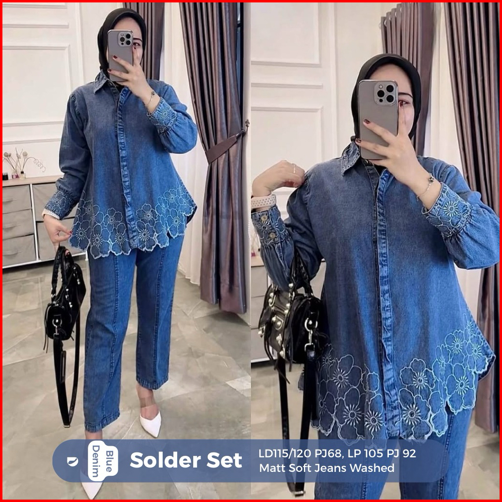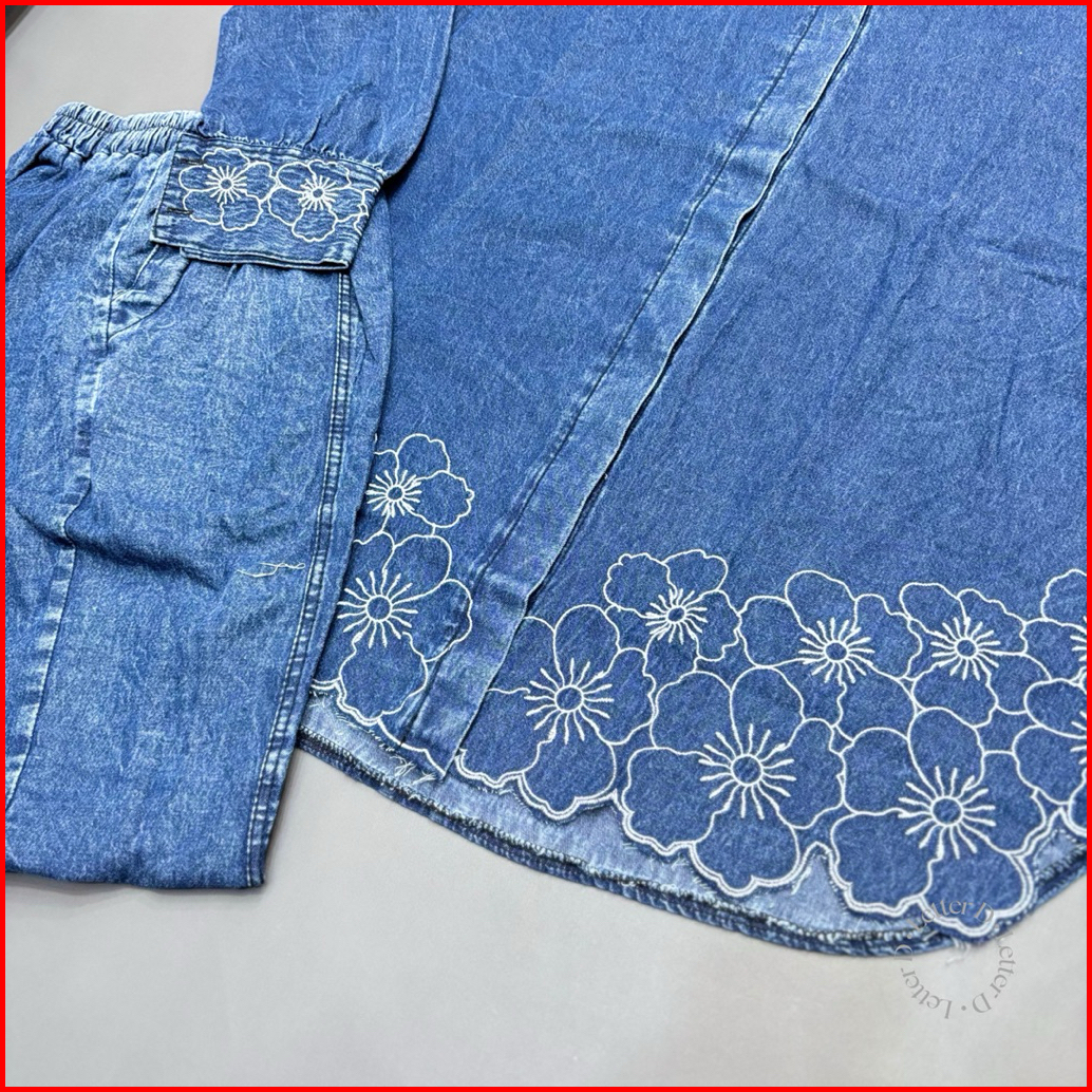 Setelan Celana Jeanswash Denim Mix Aksen Bordir Bunga Elegan Mewah Wanita Dewasa I Bunga Solder