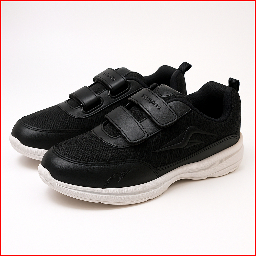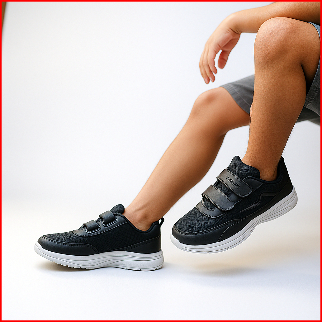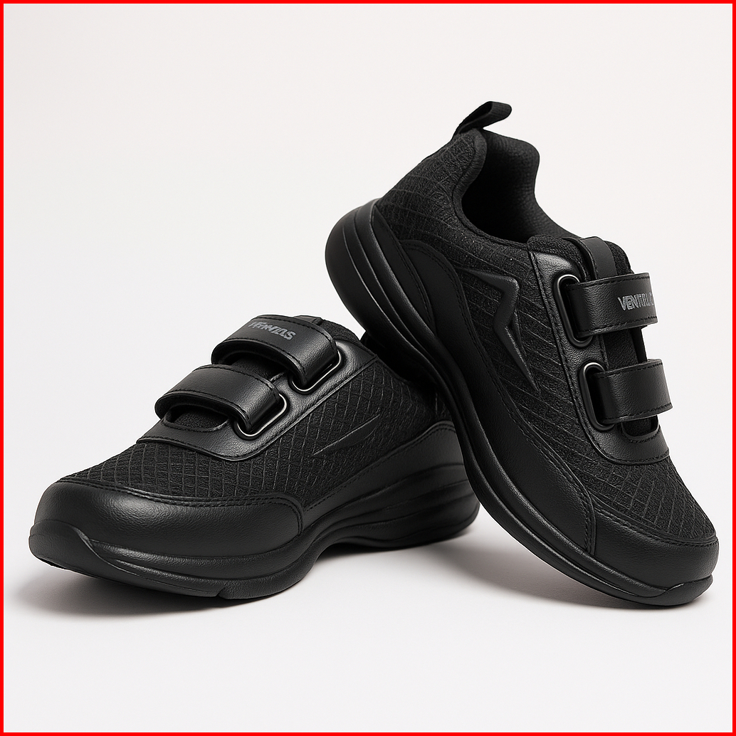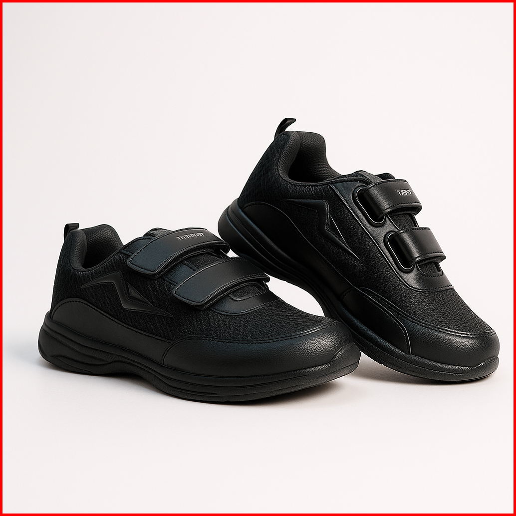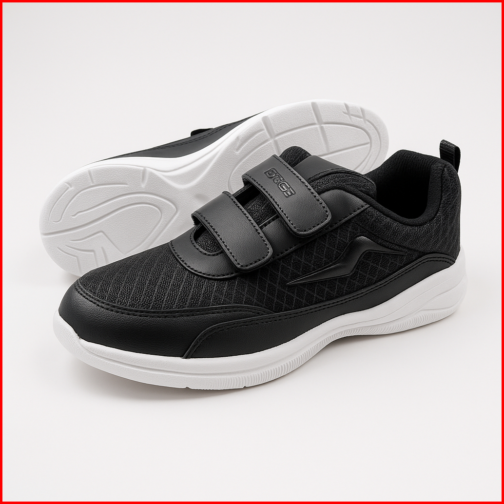 Sepatu Zigma Sekolah Anak Laki Laki Perempuan Hitam Putih Polos Tali Perekat Velcro Tk Sd Smp