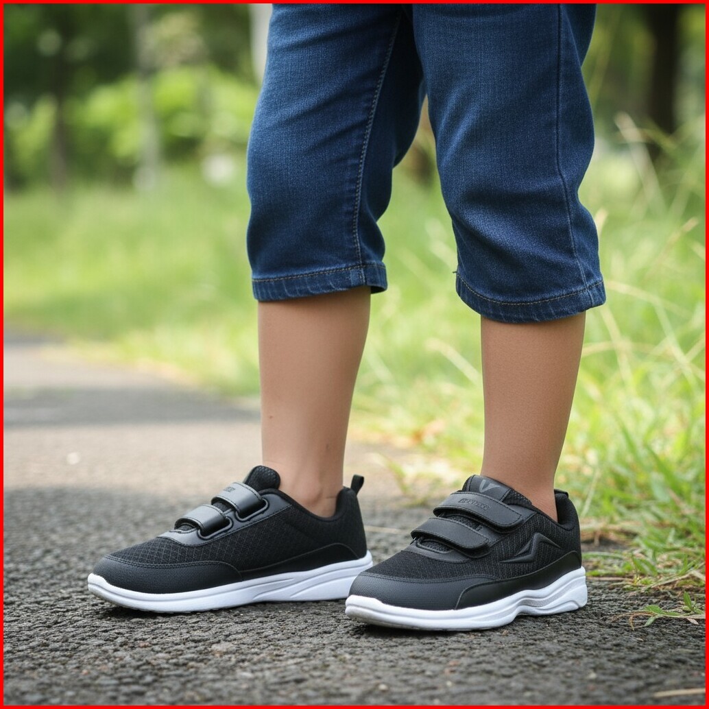 Zigma Sepatu Sekolah Anak Ukuran 30-37 Hitam Putih Sneakers Black White Velcro Tanpa Tali