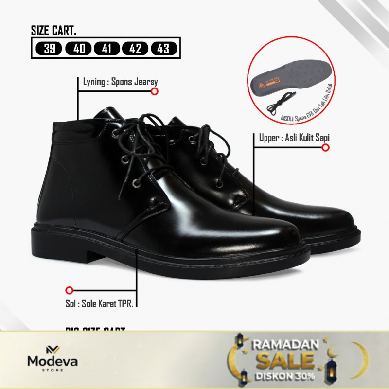 STALLANK Sepatu PDH Pria Boots Glossy Kulit Asli Formal Tahan Lama