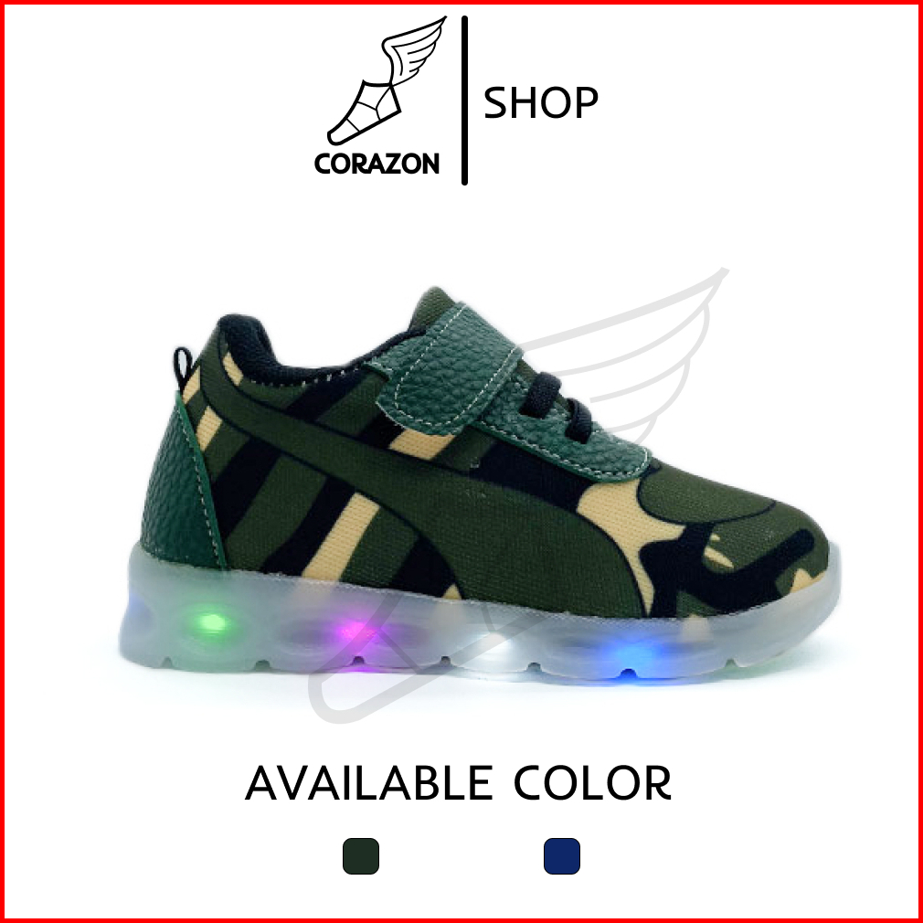 Sepatu Anak Laki Laki Lampu Led Army Jaring Variasi Keren