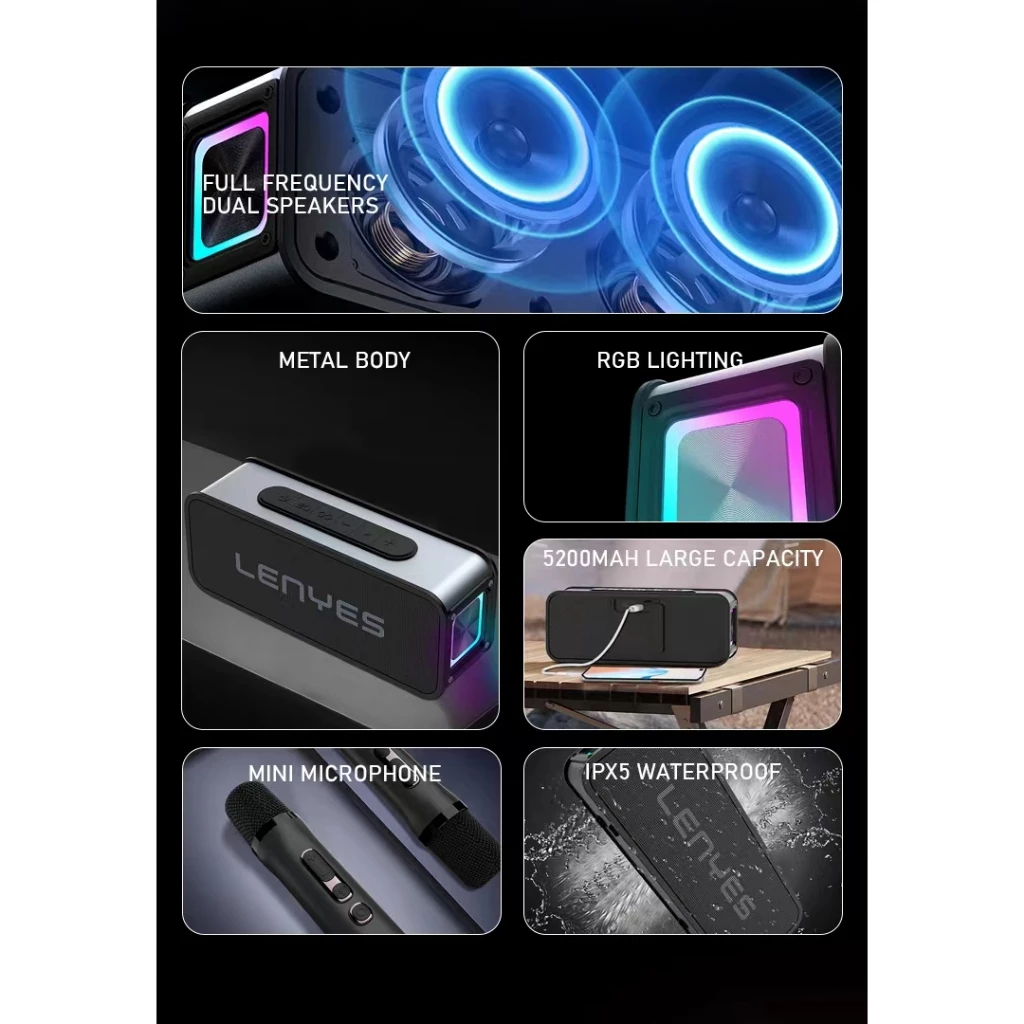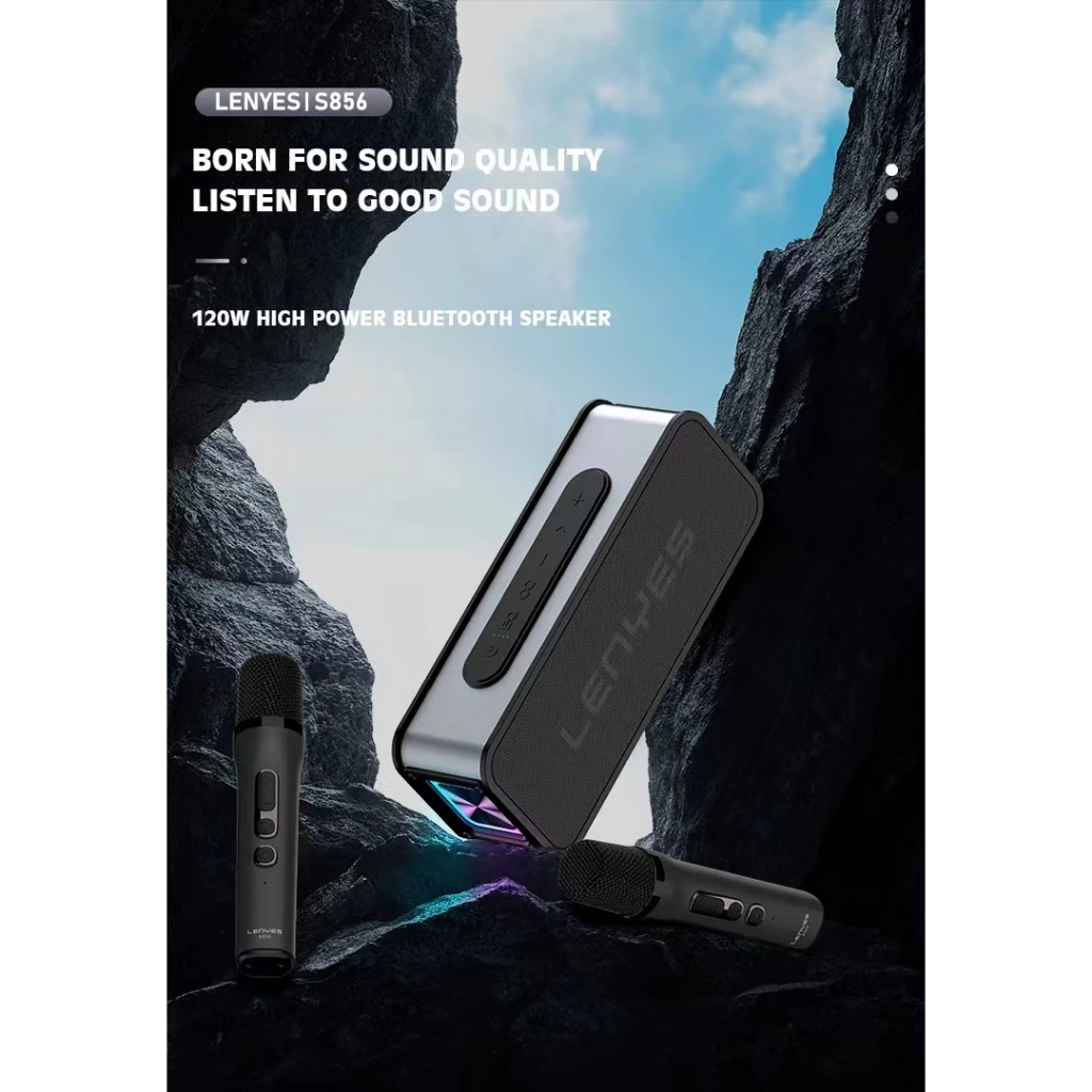LENYES S856 KTV 120W Wireless Speaker + Microphone Karaoke Bluetooth 5.0 Portable RGB Light DSP High Power