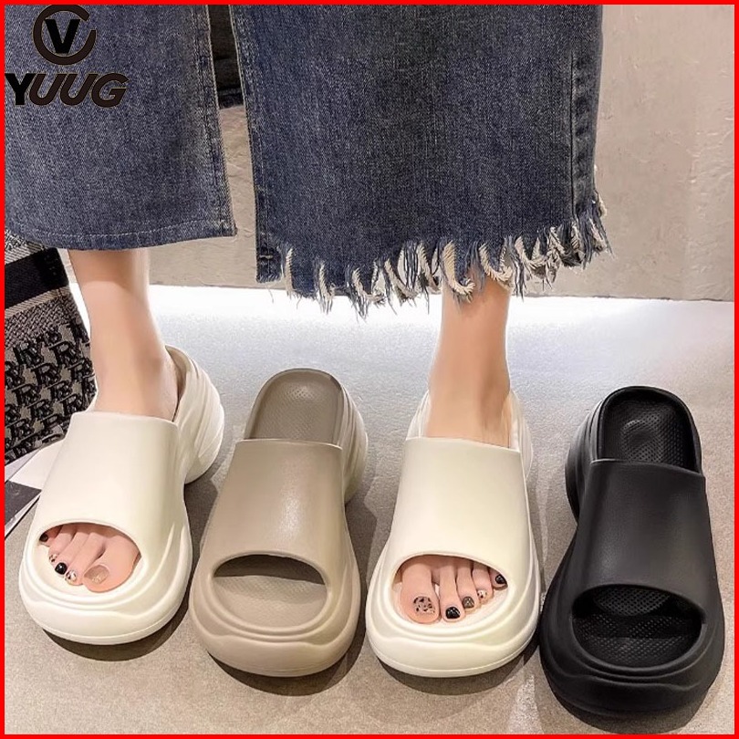 Yuug Teancy Sendal Selop Cewek Kekinian Korea Sandal Wedge Wanita Tinggi Jelly Sandal Fuji Korea Style Motif