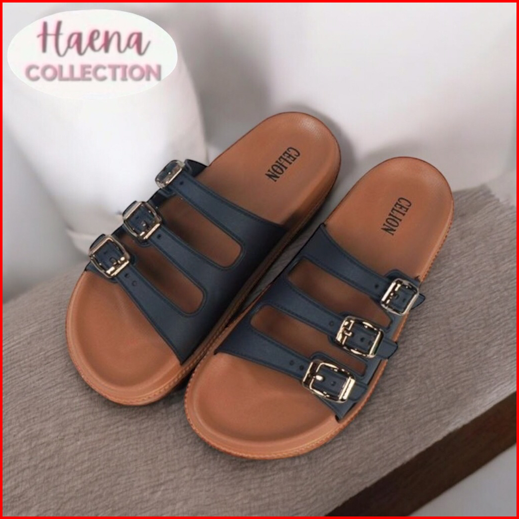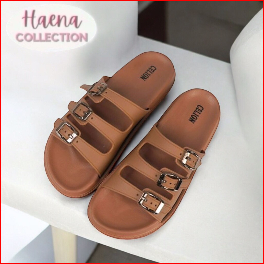 Haena.collection Sandal Wanita Slop Gesper 3 Karet Jelly Empuk Dan Nyaman Gratis Ongkir 225 Celion
