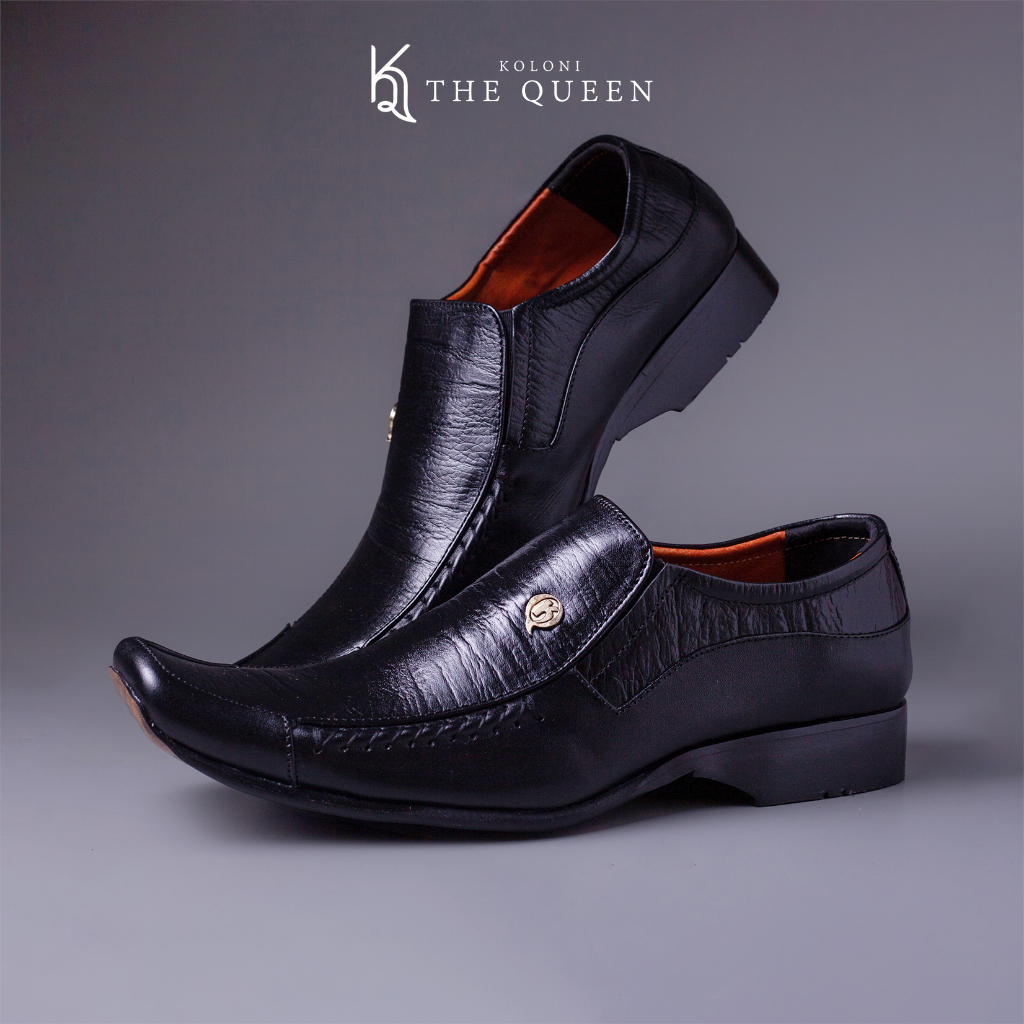 [Mall] KQ Indonesia K-7043 Sepatu Pantopel Pria Kulit Asli Hitam Original Formal