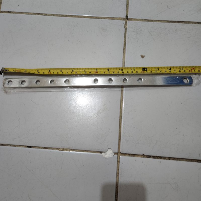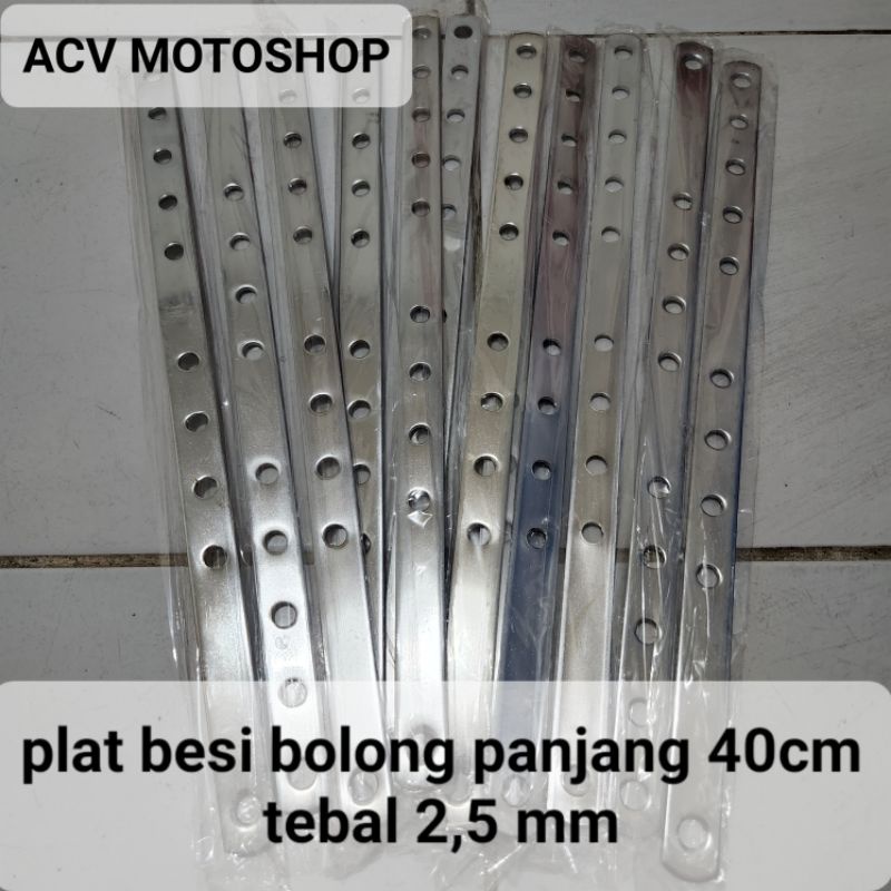 Plat Besi Bolong Tebal Chrome Universal panjang 38cm tebal 2,5mm lebar 2cm