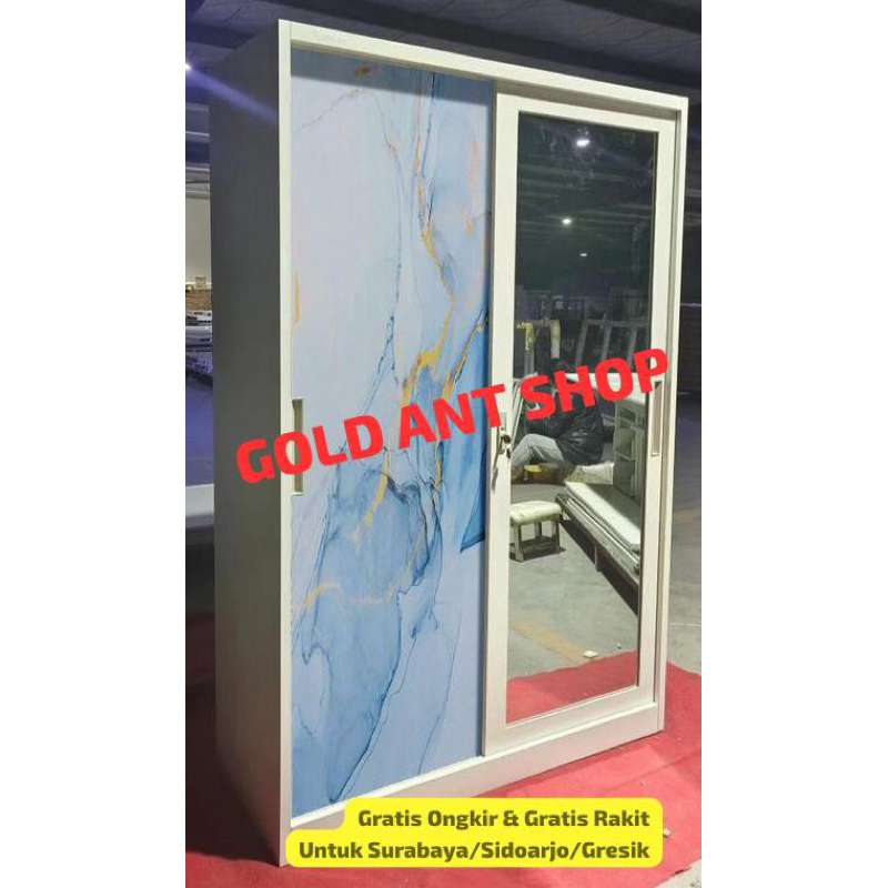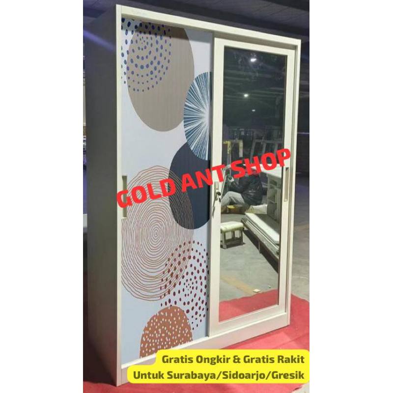 Lemari Pakaian Sliding Besi Jumbo 2 Pintu Kaca / Lemari Baju Pakaian sliding Besi Lebar 120 Jumbo Kaca / Lemari Sliding