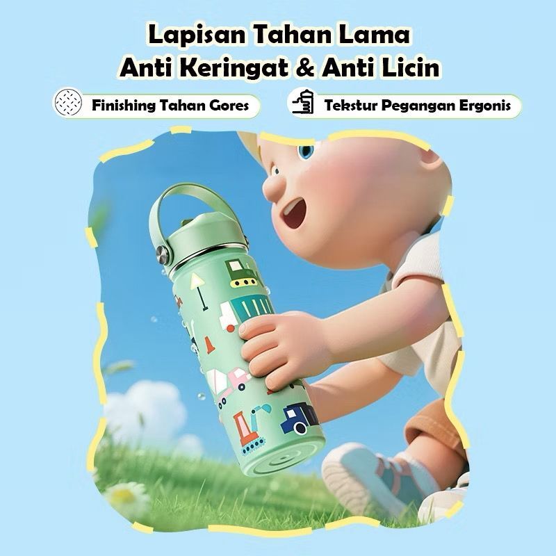 BOTOL MINUM ANAK AESTHETIC 600ML TUMBLER STAINLESS BPA FREE TAHAN PANAS DINGIN 18 JAM ANTI BOCOR