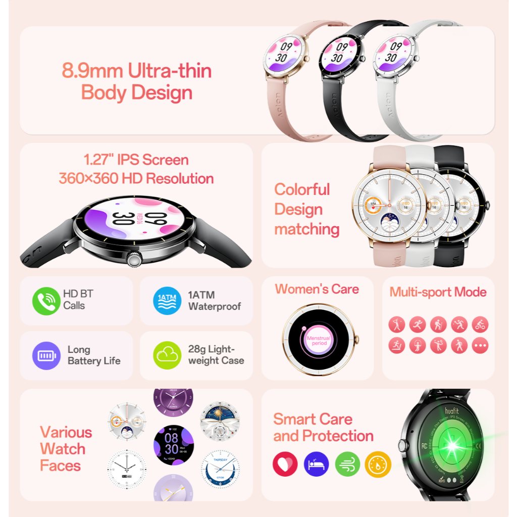PROMO Jam tangan smartwatch original [NEW ] Huafit V2 Smartwatch Wanita 1ATM Bodi 8.9mm Kalori Bluetooth Call Bergaransi