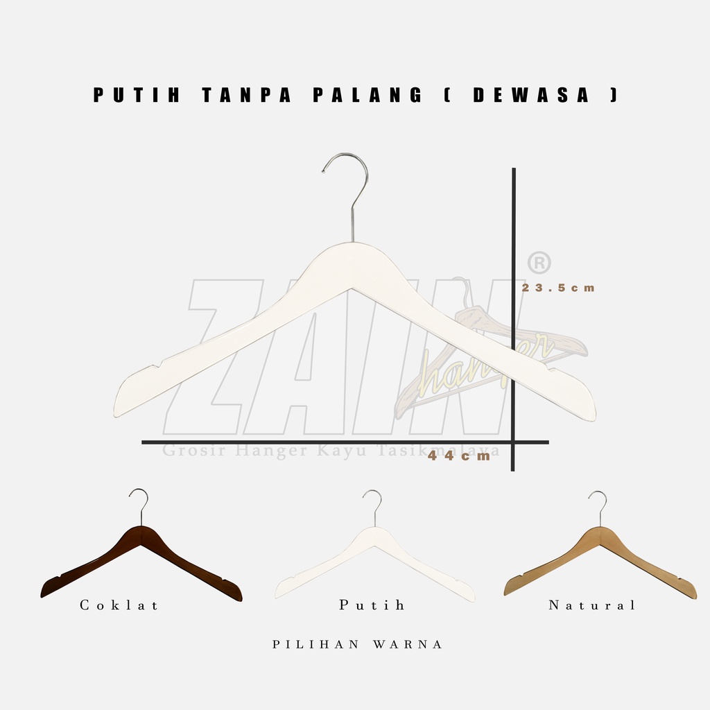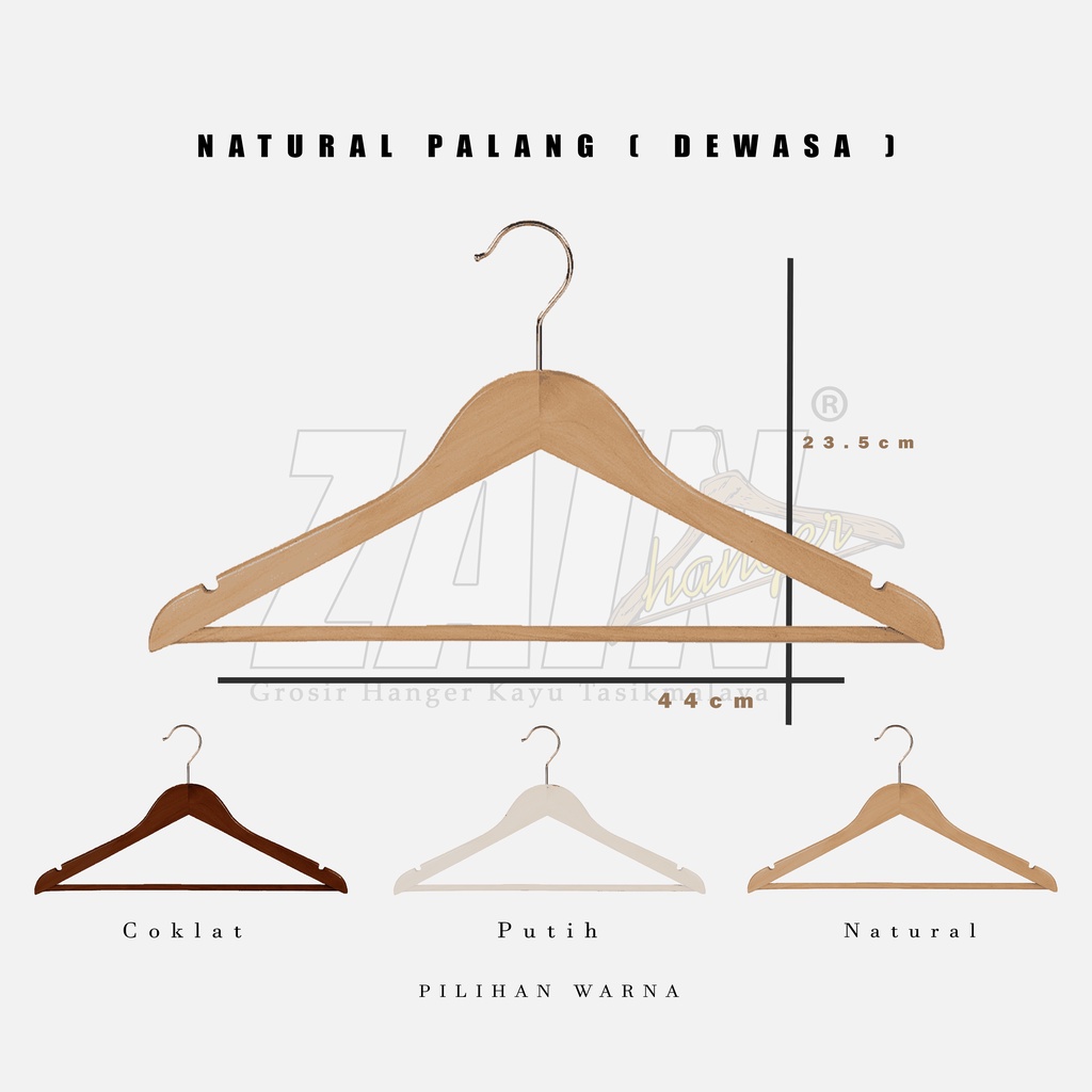 HANGER KAYU BAJU 4ppi + TANPA PALANG & PALANG KAYU + WARNA NATURAL, COKLAT, PUTIH