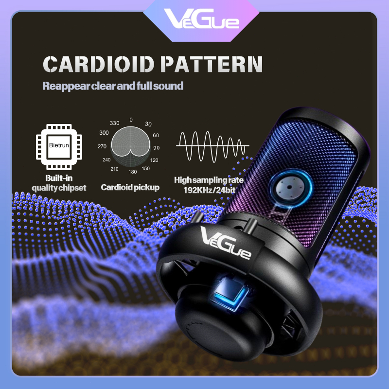Vegue-Microphone Condenser Usb Mikrofon Kondensor Studio Rgb Light - Me6S