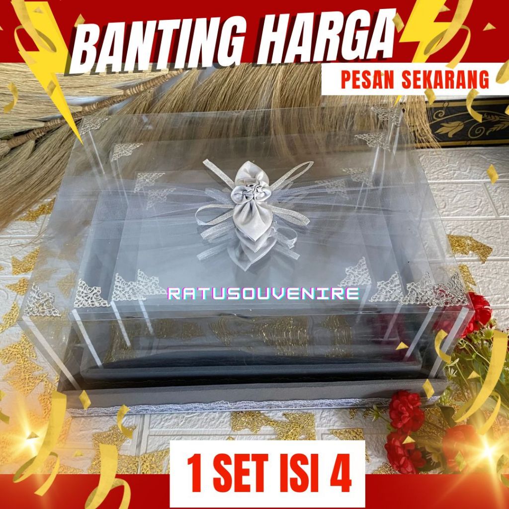 Kotak Seserahan Pernikahan Set Lengkap isi 4 Box Hantaran Parcel Mika Unik Kekinian