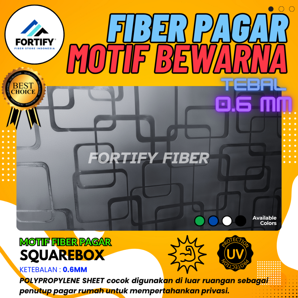 FORTIFY - Fiber Plastik Penutup Pagar Rumah Motif SQUARE BOX KOTAK 0.6mm T0P QUALITY