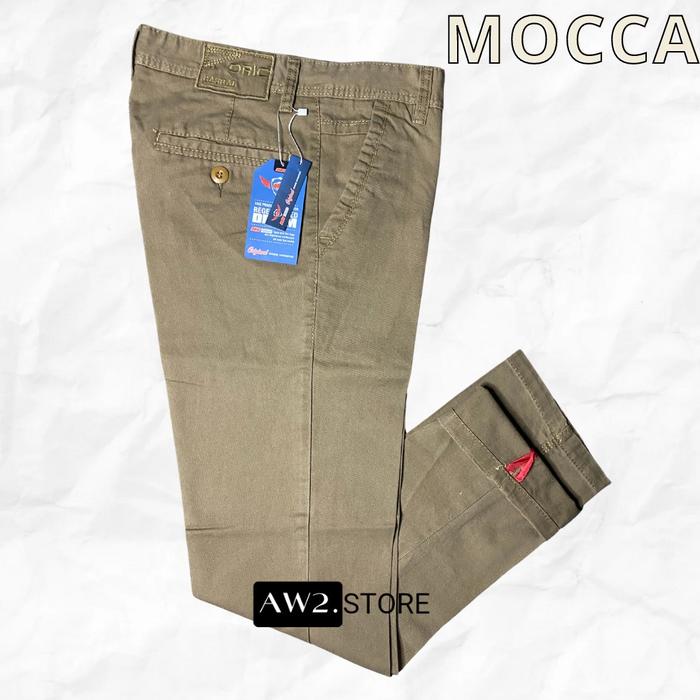 Celana Chinos Kanvas Panjang Pria Non Stretch Standar Reguler Fit Kualitas Distro Original Casual Formal Tebal - Mocca,