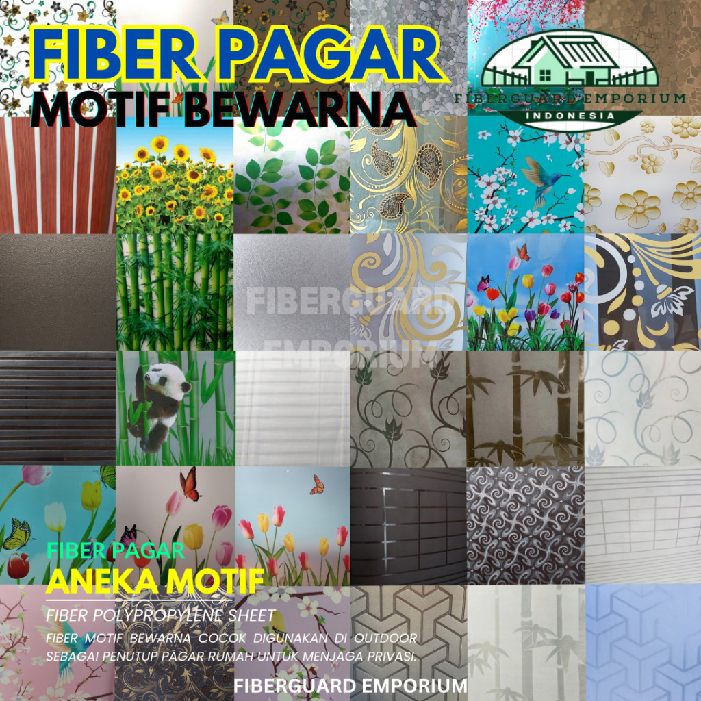 New - [BACA DESKRIPSI] - Fiber Plat Rol Plastik Penutup Pagar Rumah ANEKA MOTIF BEWARNA LAMINASI & EMBOSS Polyprop