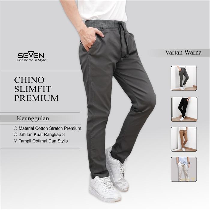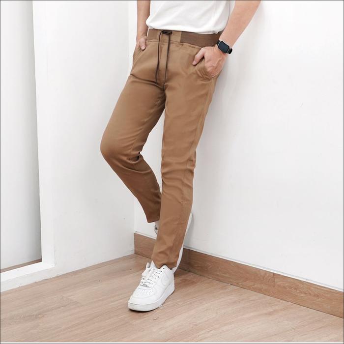 Celana Chino Panjang Pria Pinggang Karet Cotton Twill Stretch/ Size Normal Fit To Jumbo - Hitam, 27