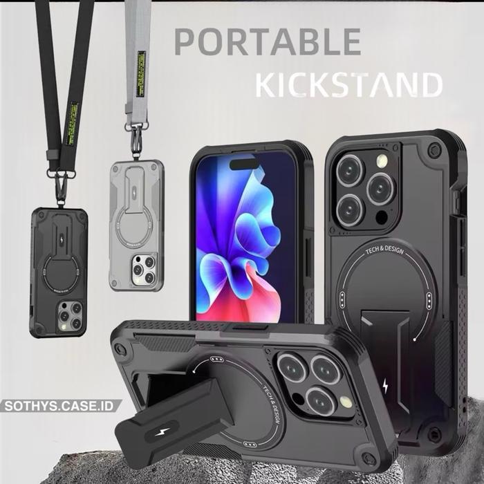 Case Defender Magsafe For Iph 17 16 15 14 13 12 11 Pro Max Plus Air With Long Strap Bracket - Hc-Black, Ip.11