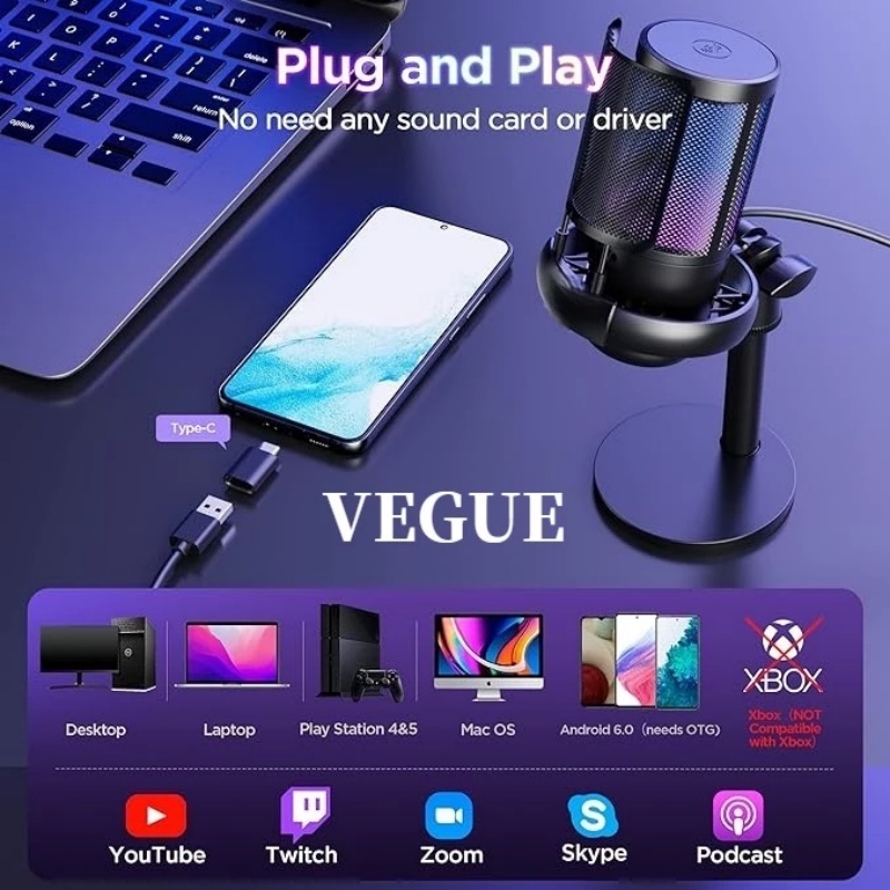 Microphone Condenser Usb Mikrofon Kondensor Studio Rgb Light - Me6S
