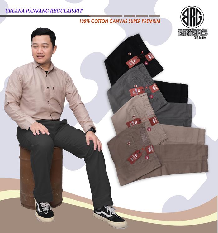 Celana Panjang Regular-Fit Kain Katun Canvas Tebal Super Premium | Celana Formal Standar Pria Dan Wanita Canvas Brande