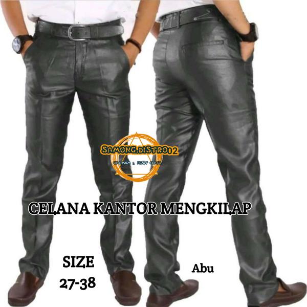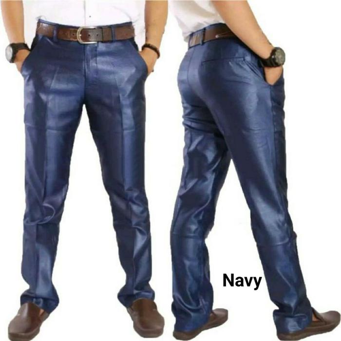 Celana Kerja Pria Mengkilap Cutting Slimfit Kantor Slim Panjang Dewasa Katun Distro Stretch Formal Hitam Cowok Chino Na
