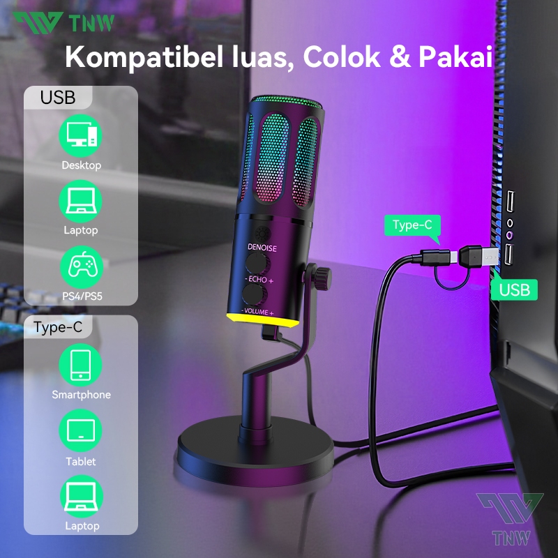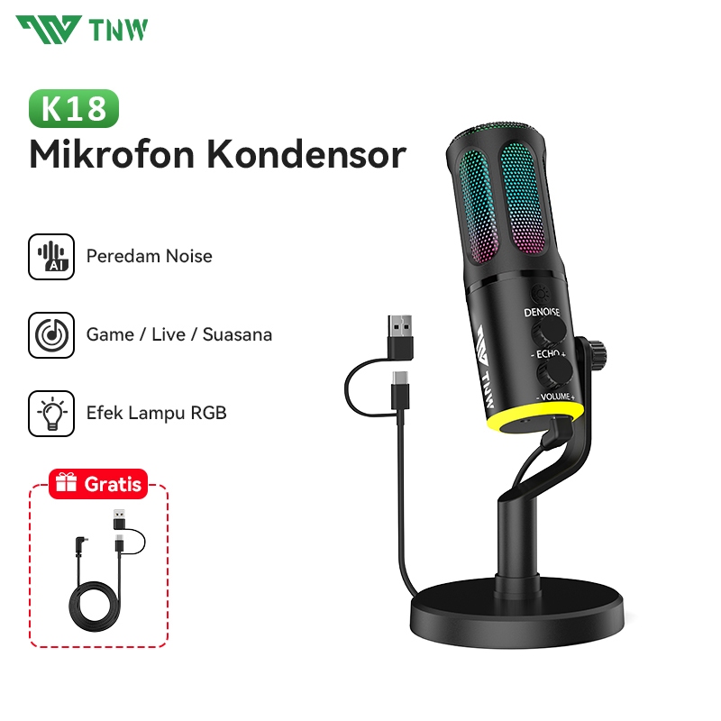 Tnw K18 Condenser Microphone Gaming Microphone Rgb Dynamic Mikrofon Kondensor For Podcast Recording Videos Untuk Pc/Lapt