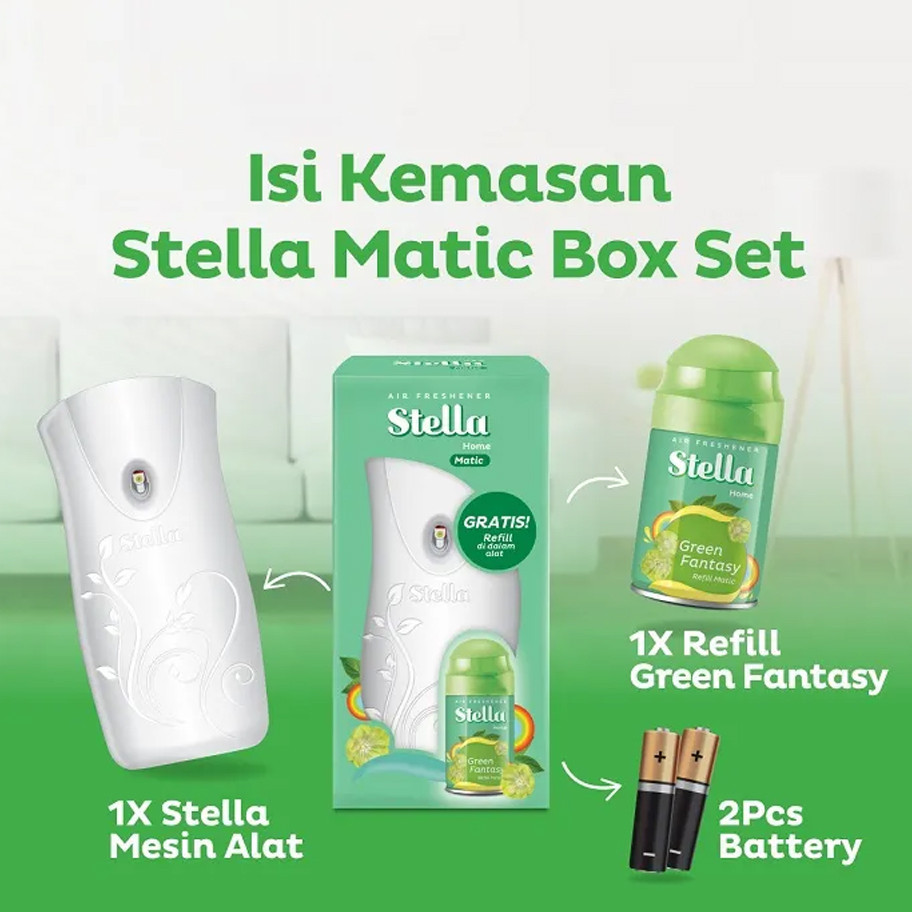 STELLA Matic Box Set Econom 160ml - Green Fantasy / Japanese Sakura | Pengharum Ruangan Otomatis | Automatic Aroma
