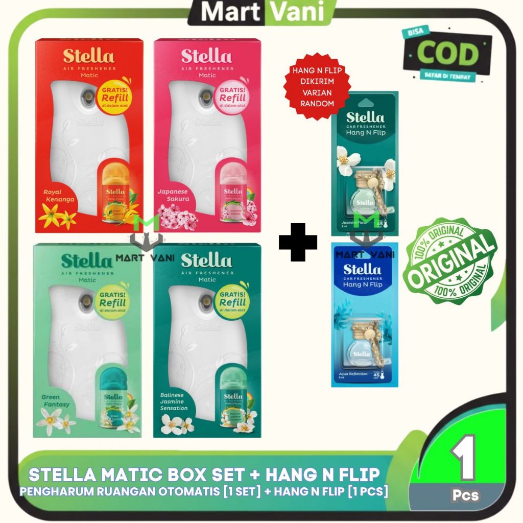 STELLA MATIC BOX SET AIR FRESHENER OTOMATIS ALAT + REFILL LENGKAP TINGGAL PAKAI (Sudah termasuk Refill 160ml dan ba