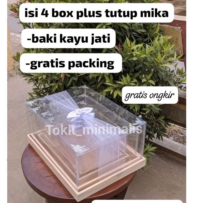 BOX HANTARAN 1 set isi 4 Dan BIJIAN KOTAK KAYU JATI BELANDA PAKET LENGKAP DENGAN TUTUP MIKA TEMPAT MUKENA DAN MAKE