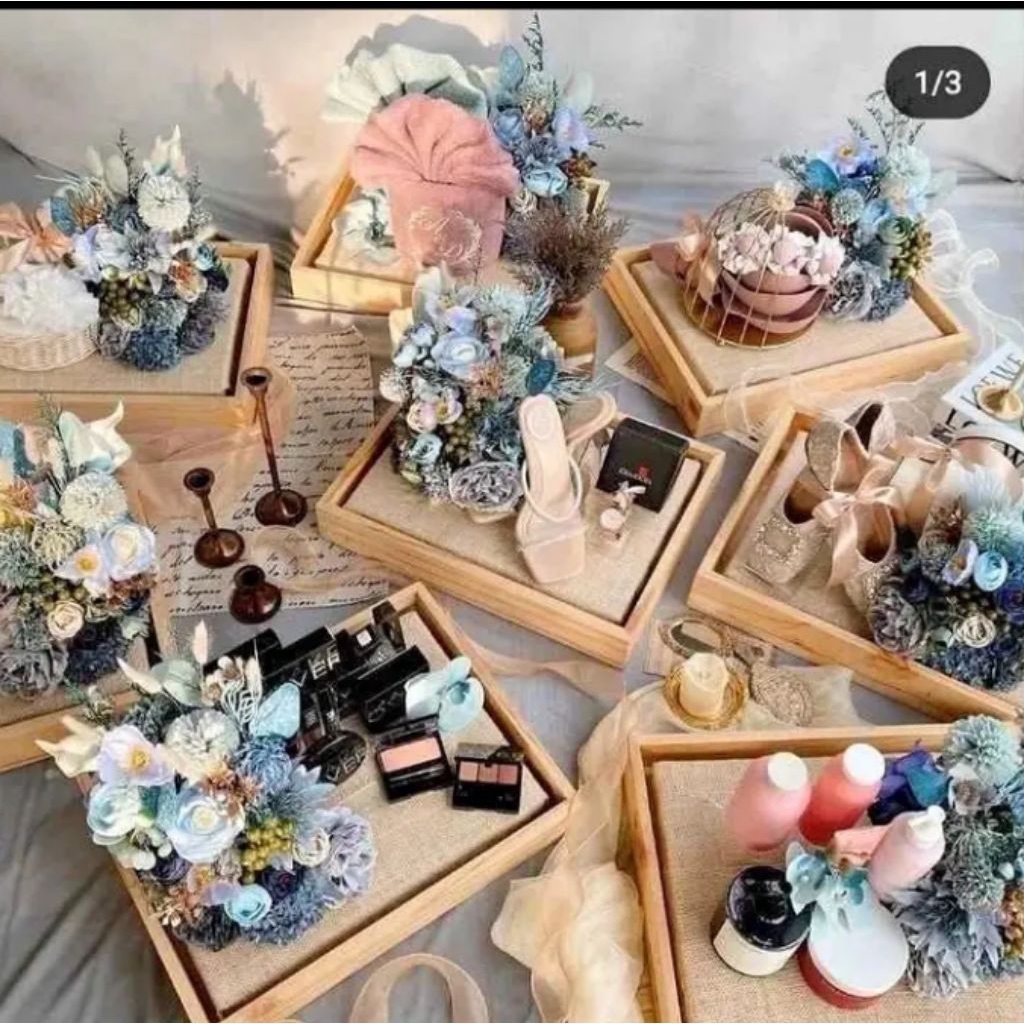 kotak hantaran seserahan kayu jati belanda 1 set isi 4 box