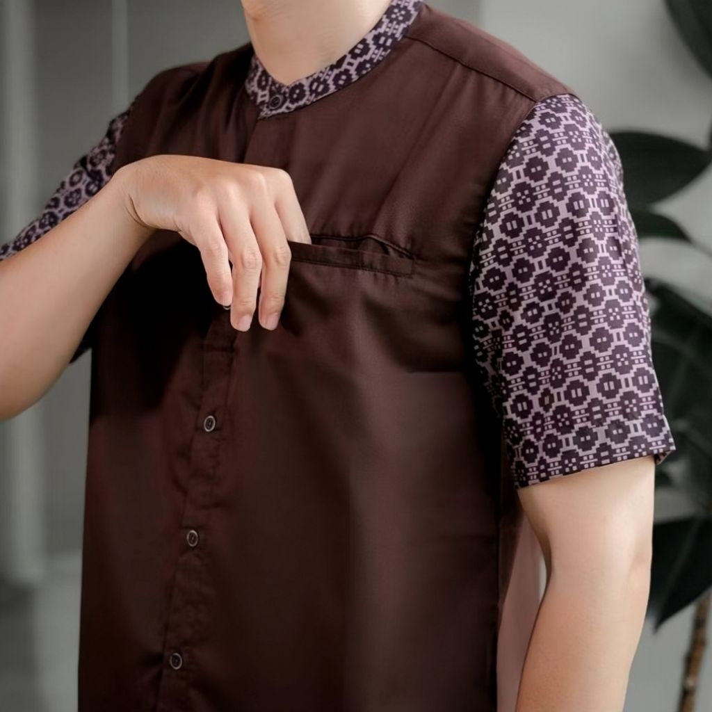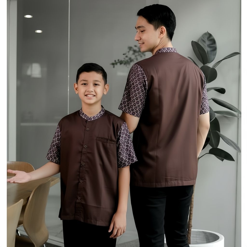 Baju Muslim Koko Kurta Kemko Couple Ayah Anak Pria Dewasa dan Anak Laki-Laki Warna Burgundy Mahogany Toyobo Premium Cott