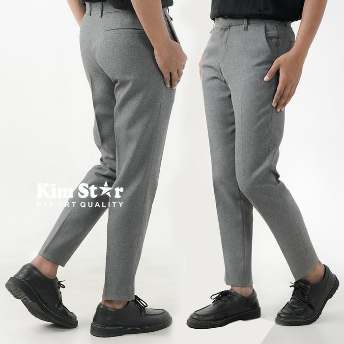 Kimstar - Celana Slim Fit Pria | Bahan | Premium | Hitam Panjang Formal Kerja Kantor - Abu Tua, 27