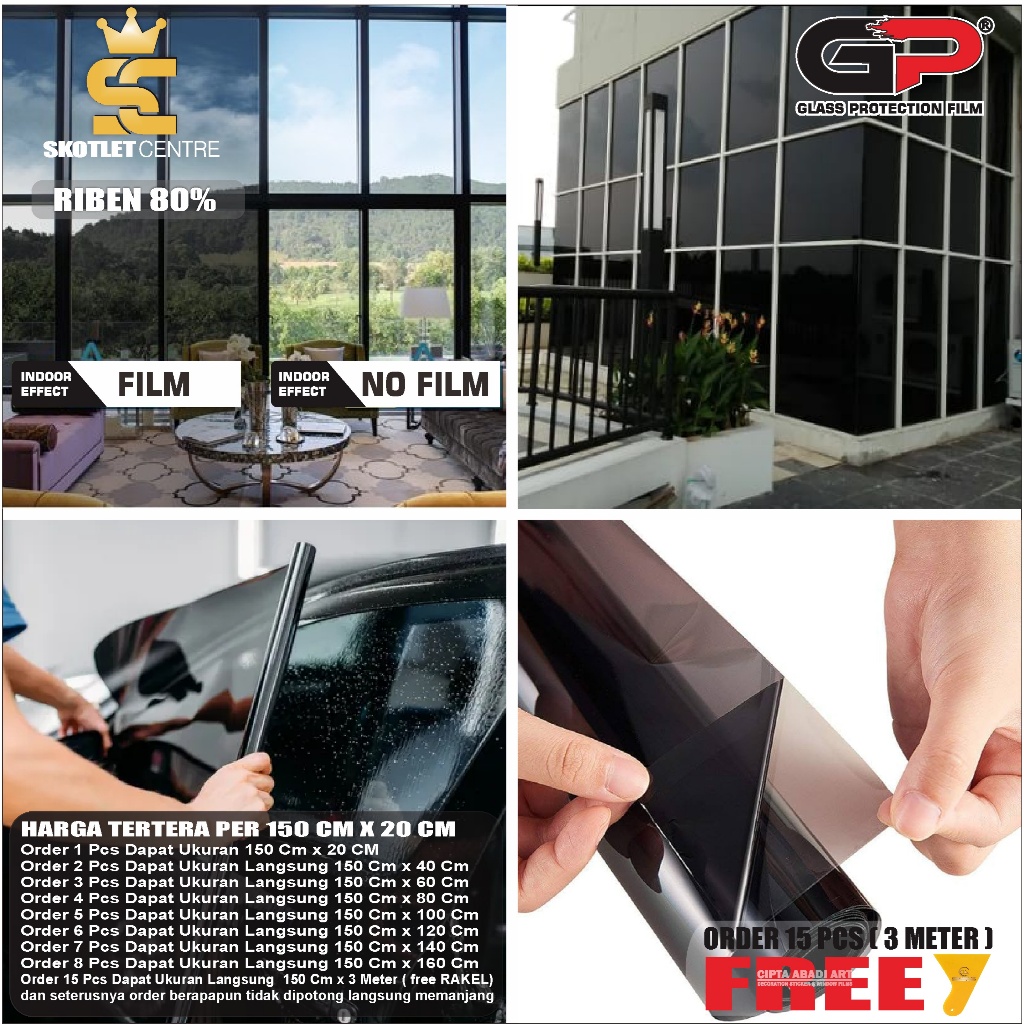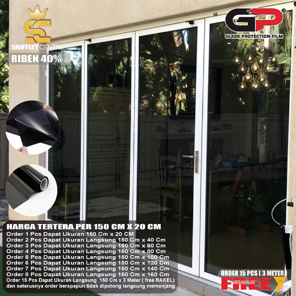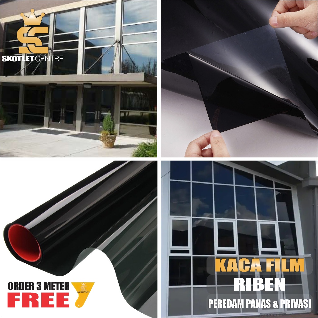 Stiker Kaca Film Riben Sticker Tolak Panas Jendela Pintu Rumah Gedung Mobil Tidak Tembus Pandang One Way Hitam Tola