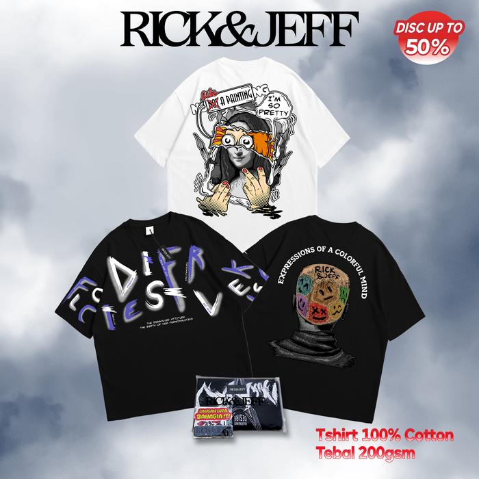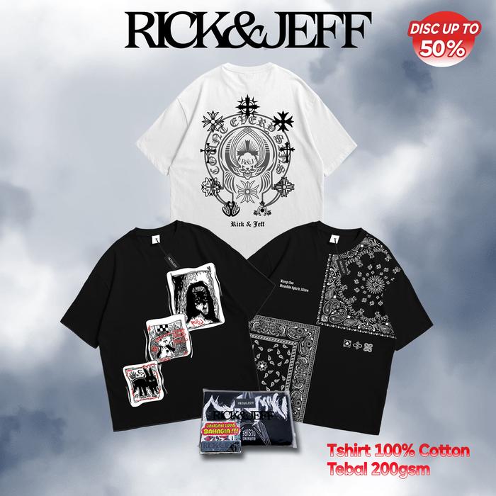 Gratis Sticker Buy 1 Get 3 Rickandjeff Kaos Oversize Unisex Pria Wanita Cotton Combed 24S - Variasi A, M
