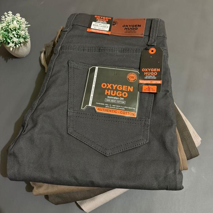 Celana Chino Oxygen Haygo Original Premium Terbaru Pria Dewasa Melar - Hitam, 28