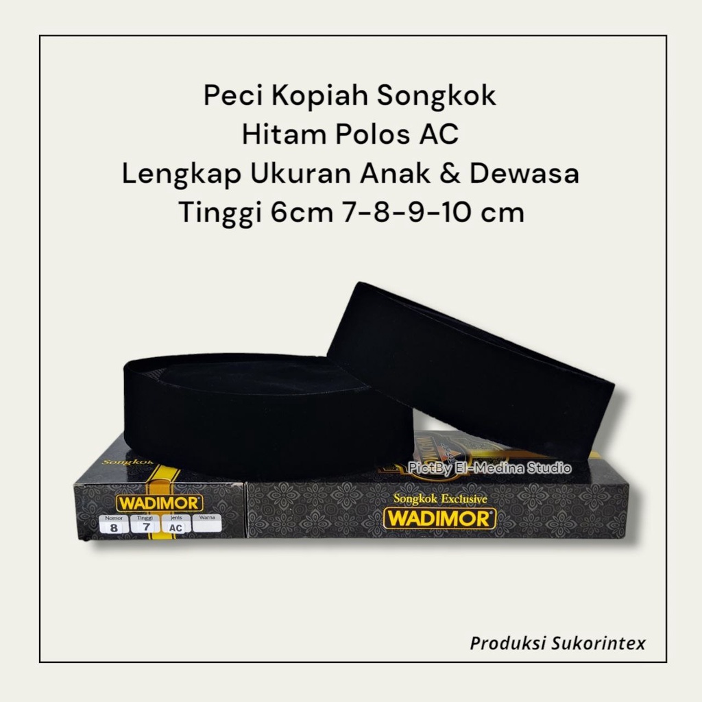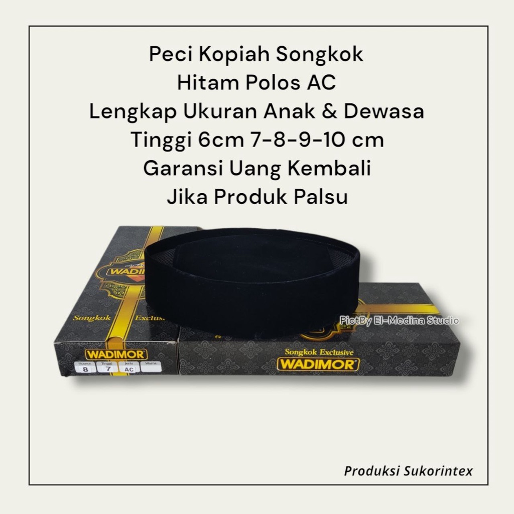 Songkok Wadimor Hitam los Ac Tinggi 6 7 8 9 10 Cm Original Wadimor Halus Tebal