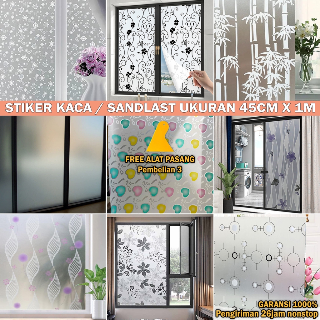Stiker Kaca Sandblast 45cmx1M Pelapis Jendela Rumah & Kamar Mandi | Sticker Motif Buram Premium Anti Tembus Pandang