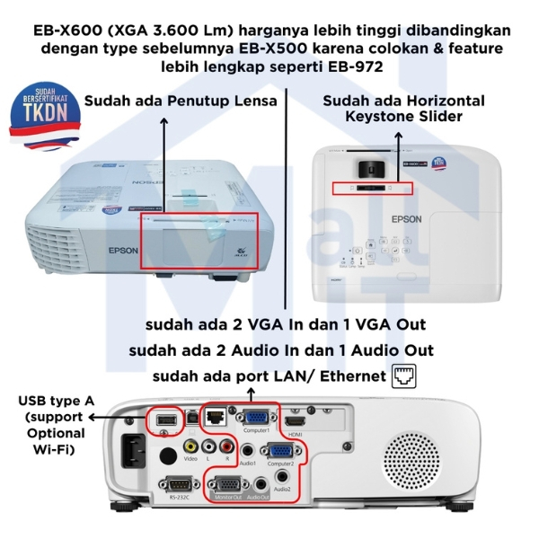Mallit Epson Proyektor Epson Eb-X600 Ebx600 Eb X600 Xga 3Lcd 3600 Lumens Tkdn Split Screen Vga Hdmi Garansi Resmi Jakart