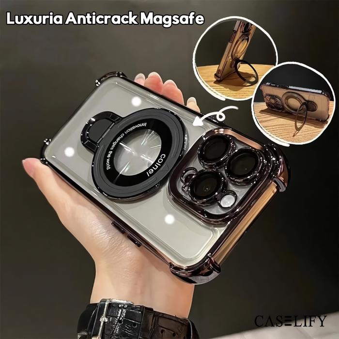 Caselify Luxuria Anticrack Magsafe Standing Lens Protector Case Compatible With Iphone 11 12 13 14 15 16 17 Air Plus Pro