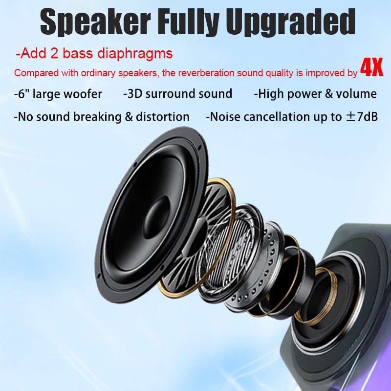 Toya Speaker Bluetooth Karaoke Led Light Lamp Eight Colour Ktv Equipment 3D Stereo Microphone For Family Party