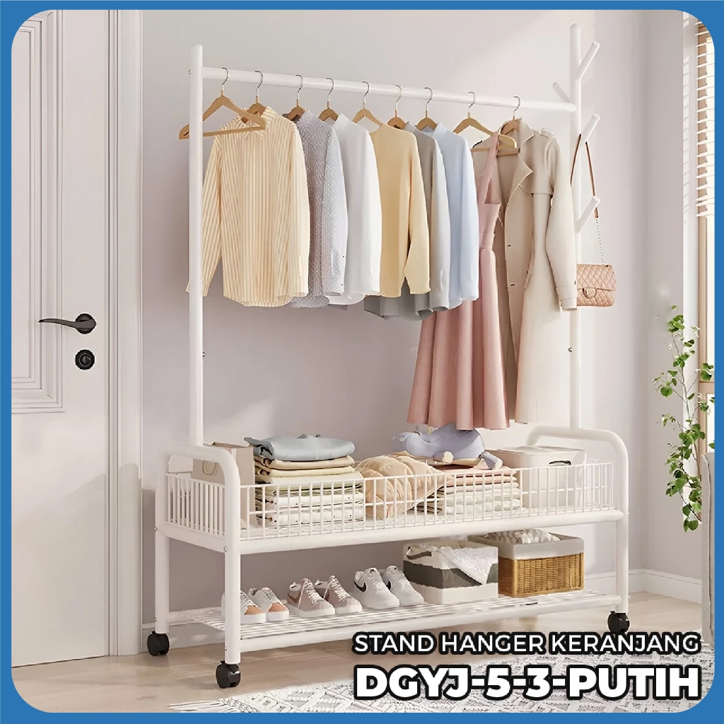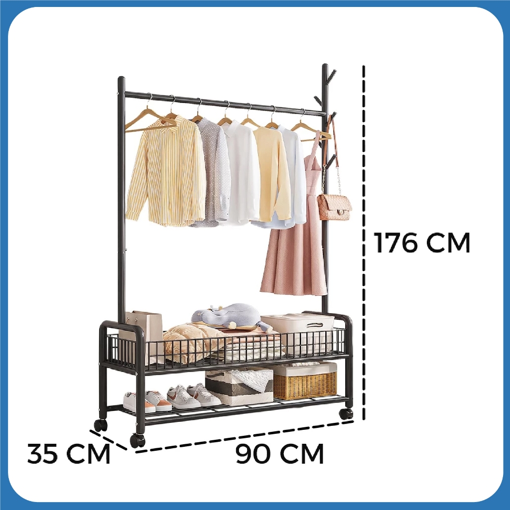 Stand Hanger Besi Rak Penyimpanan Multifungsi Stand Hanger Minimalis - Worlddekor