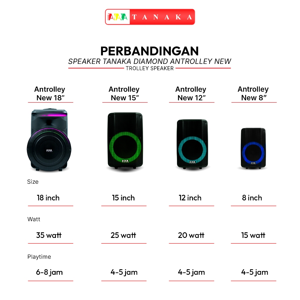 Tanaka Diamond Antrolley New Speaker 8/12/15/18 Inch Portable Bluetooth Indoor Outdoor Karaoke Mic Wireless Garansi Resm