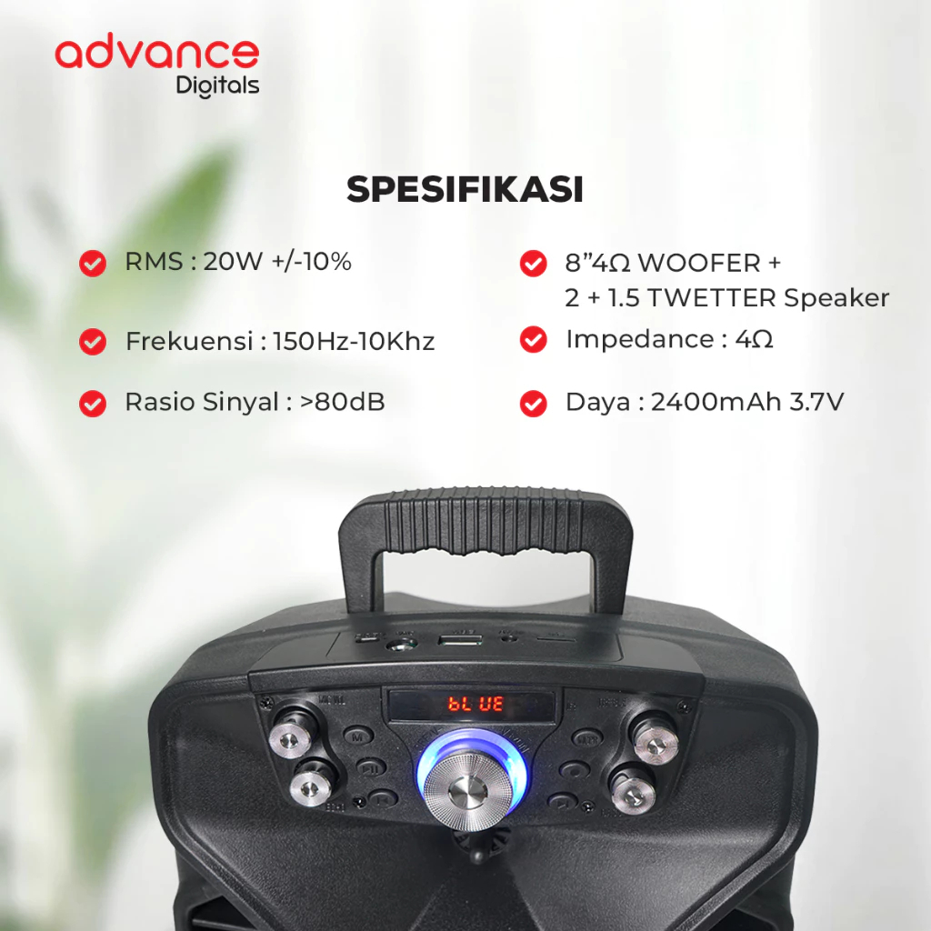 Advance Speaker Portable Bluetooth H801N Wireless / 2 Mic Wireless 8Inch Speaker Bluetooth