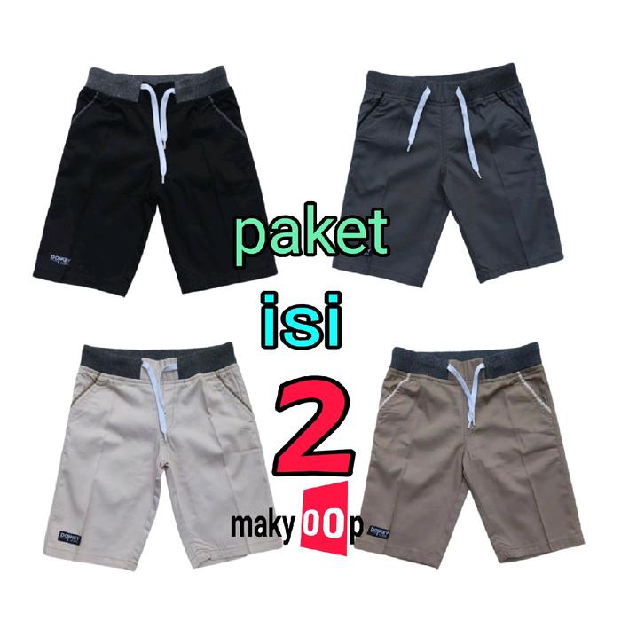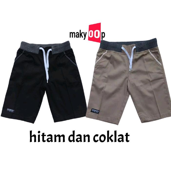 Celana Pendek Pria Chinos 40 Rb Isi 2 Celana Polos Santai Karet Melar Panjang Shorts Coklat Hitam Surfing Abu - Hitam Da