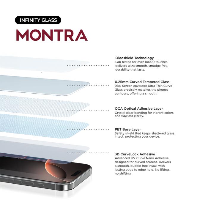 Montra Infinity Glass - Tempered Glass 3D Ar/ 3D Clear For Iphone 17 Series With 0.25Mm Curved 9H Oleoshield - 3D Clear