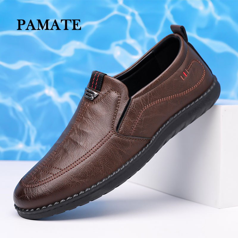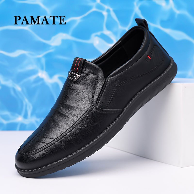 [Mall] Sepatu Casual Pria Slip On Kulit Anti Slip Nyaman Praktis untuk Kerja Tahan Lama