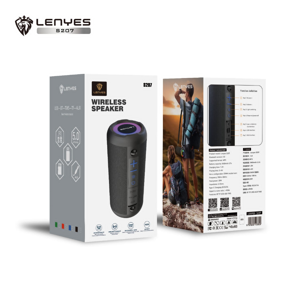 Lenyes S207 Led Colorfull Lights Wireless Speaker Bluetooth 5.0 Portable Hifi Sound Quality Tws