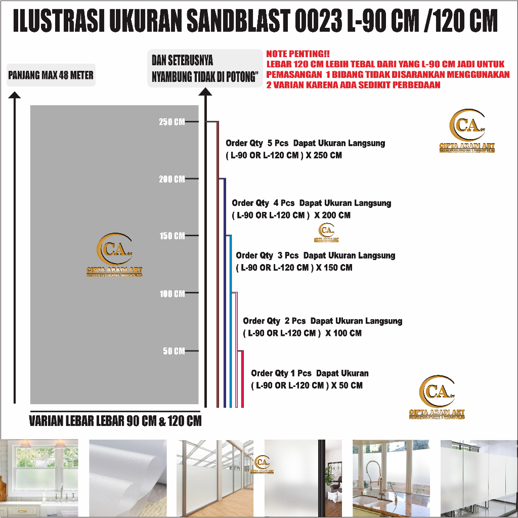 Stiker Kaca Jendela Rumah Tidak Tembus Pandang Sandblast Polos lebar 90 Cm dan 120 Cm