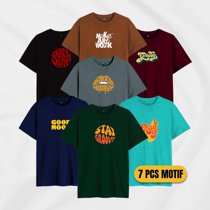 Paket 7Pcs Kaos Motif Murah Viral / Kaos Lengan Pendek / Baju Atasan Pria / Kaos Pria Murah Poly Cotton 30S Dewasa Oblon