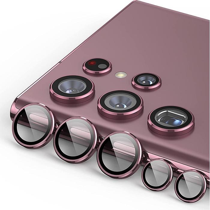 Gennext For Samsung S22 Ultra Ring Tempered Glass Camera Cover Pelindung Kamera - Burgundy, S22Ultra